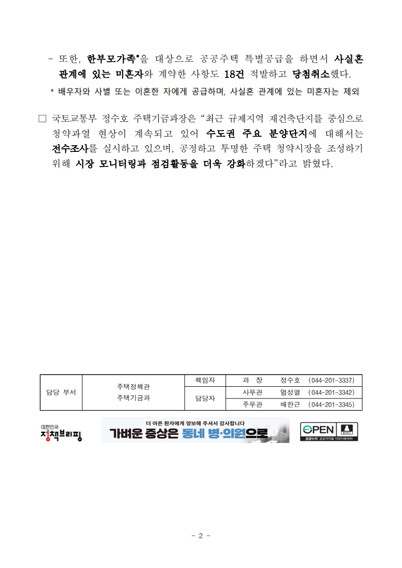부정청약 127건 적발 공정한 청약시장 조성에 총력(국토교통부 제공)